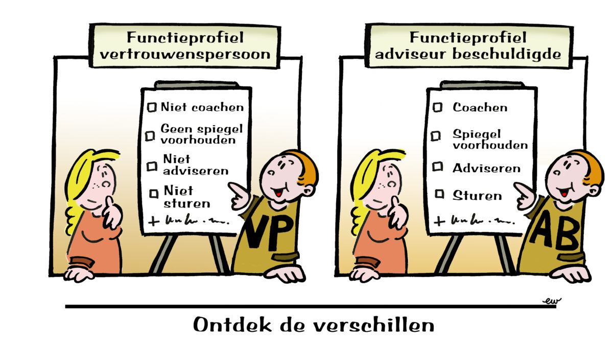 De ondersteuning van een beschuldigde vraagt om een deels zelfde ondersteuning en deels andere ondersteuning dan die de vertrouwenspersoon kan bieden.