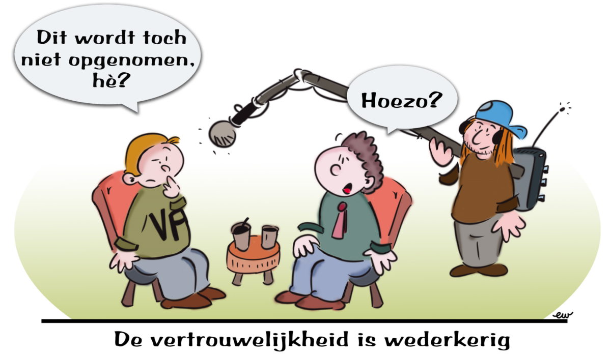 Daarnaast heb je als vertrouwenspersoon de keuze om aan de orde te stellen dat het tegenwoordig steeds vaker voorkomt dat er geluidsopnames worden gemaakt en dat je daarbij aangeeft het op prijs te stellen dat dit niet gebeurt.