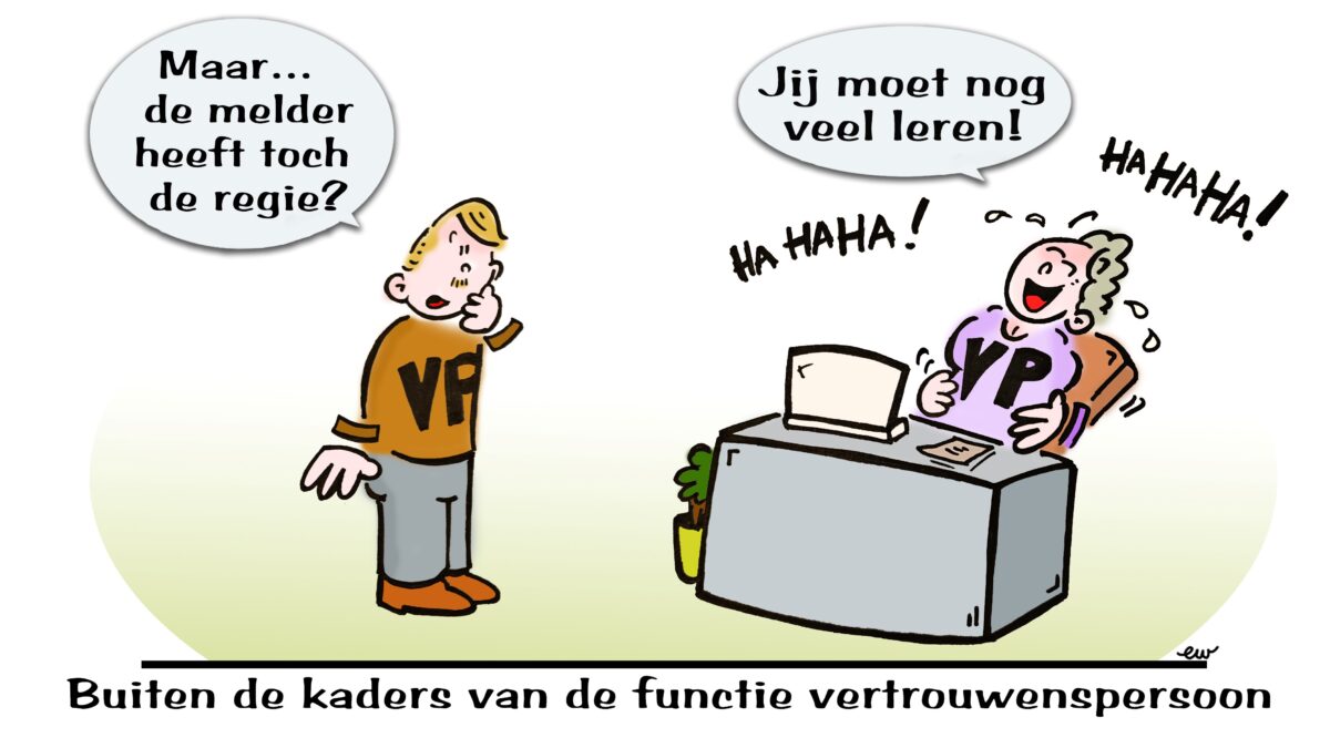 “Nu ben ik het spoor bijster” zegt Loek, “maar de laatste bij wie ik nu terechtkan, is bij mijn collega vertrouwenspersoon.”