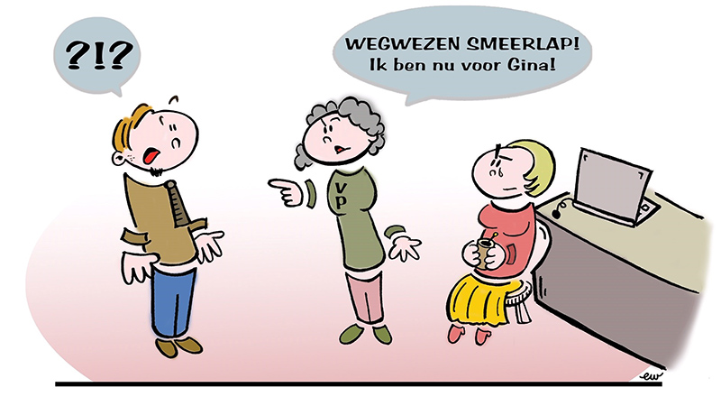 ‘Ken je positie had die vrouw tegen Gina gezegd. ‘Bitch,’ dacht Gina, ‘ken zelf je positie: hoe durf je in de telefoon van je man te kijken naar de persoonlijke appjes die hij krijgt van een collega. En dan ook nog bellen met zijn telefoon, puur schending van de persoonlijke levenssfeer….’ Ja, nu snapte ze wel dat ze dat hele weekend al geen reacties kreeg van haar collega, terwijl hij anders meteen reageert op haar apps, ook in het weekend. Dat mens had gewoon zijn telefoon gepakt. Je moet maar durven en dan ook nog bellen. Ze had met dat mens niks te maken, Gina kende haar nauwelijks. Ze had haar een keer ontmoet op een bedrijfsfeest. Toen vond ze haar al dominant.