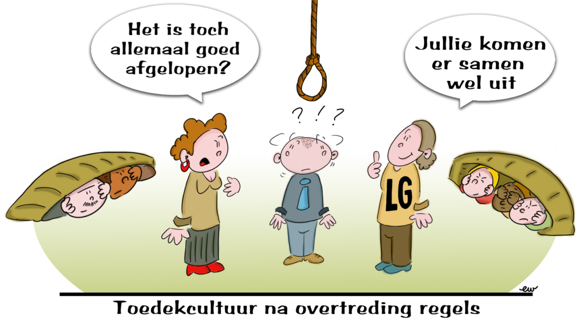 Mij gaat het niet om het straffen van mensen die regels hebben overtreden, maar om te leren van de situatie die zich heeft voorgedaan of het risico wat je loopt door regels te veronachtzamen. Mocht je nog denken: ‘Het is toch allemaal goed afgelopen?’, dat is het absoluut niet.